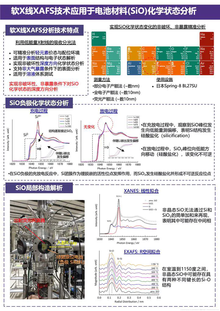 (1) Sensitivity to light elements: It enables direct probing of the electronic structure and chemical states of light elements (e.g., O, Si, Li) that are crucial for battery performance.